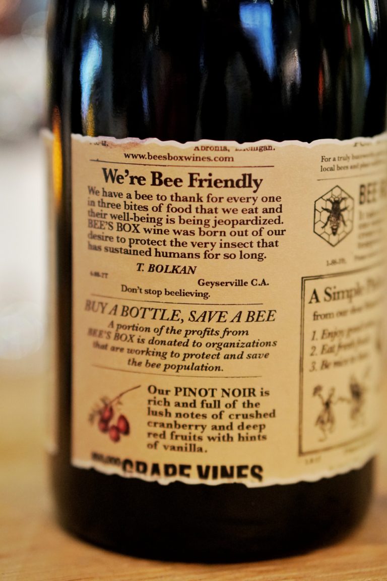 Bee’s Box Wines. Great wines that give back 10% of the profits to organizations fighting to protect these little pollinators that have sustained us for so long. It’s our turn to help sustain them