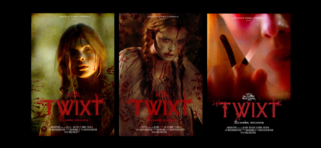 Twixt is a 2011 horror thriller film written, directed and produced by Francis Ford Coppola starring Val Kilmer and Elle Fanning, The film premiered on September 4, 2011 at the Toronto International Film Festival and was screened at various film festivals in North America, receiving a limited theatrical release in a handful of International markets. The film’s title, Twixt, refers to the two worlds explored in the film, the dream and the waking worlds.